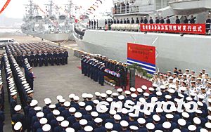 毛澤東誕辰110周年前夕,中國海軍在東海艦?zāi)瞅?qū)逐艦支隊舉行“愛艦愛島愛海洋”系列教材發(fā)行儀式,。1953年2月,毛主席曾視察某驅(qū)逐艦支隊,并在該支隊“長江”、“洛陽”等艦上寫下了“我們一定要建立強大的海軍”的題詞。作者:鐘魁潤