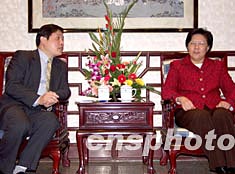 參加“2003香港青年江蘇行”活動的香港特別行政區立法會主席范徐麗泰,22日到南京航空航天大學與學生交流并與校長交流。作者:丁東升