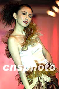 二十四日下午,在二零零三中國(guó)國(guó)際時(shí)裝周獲得大獎(jiǎng)的幾位廣東著名服裝設(shè)計(jì)師在廣州展示他們的獲獎(jiǎng)作品。