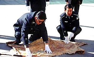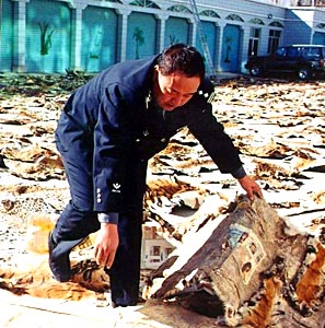 拉薩海關緝私局副局長李建文撣撣身上的土告訴記者,10月10日他們將這批動物皮張從查獲地點運回拉薩海關時,動用了全部警力,花了3個小時才將皮張數量點清。他說,根據黑市上的價格,這批動物皮張的總價值超過1000萬元。“當然,由于孟加拉虎、金錢豹和水獺都是瀕危動物,依照國家法律和國際公約都是明令禁止射殺、販賣的,所以它們的價值遠非金錢可以衡量。”李建文同時強調。