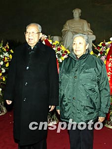 十二月二十六日上午,82歲的原中共中央主席華國鋒和夫人到北京毛主席紀念堂紀念毛澤東誕辰110周年。中新社記者:任晨鳴
