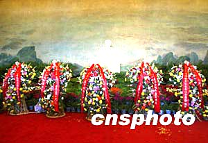 十二月二十六日是毛澤東誕辰110周年,北京毛主席紀(jì)念堂內(nèi)擺放著中共中央、國務(wù)院、全國人大常委會、中央軍委、全國政協(xié)敬獻(xiàn)的花籃。中新社記者:任晨鳴
