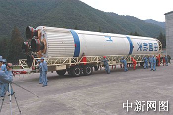 圖:"長征二號丙"改進型運載火箭準備運往發射場