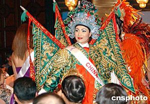 代表中國參賽的長春選手邢會原獲大賽洲際小姐冠軍。中新社記者:錢興強