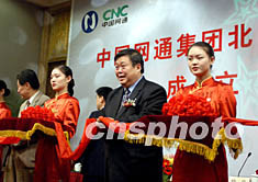 一月八日,中國網通集團北方通信有限公司正式掛牌運作,網通集團總經理兼網通北方董事長張春江在北京為公司成立剪彩。網通南方通信有限公司將于近期在上海成立。中新社記者:張宇