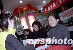 一月九日,中央編譯出版社新近出版的《未被審判——中國民間對日索賠紀實》在北京西單圖書大廈舉行作者趙冬苓(右二)簽名售書活動,對日民間索賠的著名人士王選(右)來到現場做主題演講并簽售此書。作者:徐曦弋