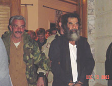 上述照片看似是由美國軍方內部或是與美軍關系密切的人在美軍抓到薩達姆時拍攝的。其中另一張照片顯示,當薩達姆被帶往他在巴格達的一座皇宮、現為美軍總部時數十名軍方人員圍在薩達姆身邊。