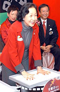芳艷芬為香港《星光大道》打手印。息影女星芳艷芬1月5日在香港出席《星光大道》打手印儀式,芳艷芬才藝超卓,為五十年代粵劇花旦王,從影十年,演出電影一百五十多部電影。作者:鄧慶樂