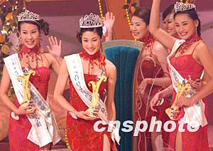 中網1月19日電 據香港媒體報道,2004年度國際華裔小姐競選于前晚圓滿結束,得獎佳麗包括冠軍鐘嘉欣、亞軍及友誼小姐曹敏莉和季軍及笑靨花容小姐洪巧玲,昨日到各贊助商處領取獎品。由金至尊公司贊助的 華姐獎座及名表,總值達港幣七十萬元,而三位佳麗更于該公司轉幸運風車。據悉,風車由黃金制造并鑲上鉆石,價值七百多萬元,佳麗笑言轉過如此貴重的風車,一定成為“貴人”。