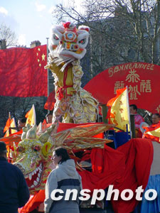 由北京和巴黎兩個友城策劃、旅法僑界參與,以中國文化為核心的七千多華人春節彩妝大游行,二十四日下午在世界花都巴黎的香榭麗舍大道舉行。巴黎萬人空巷,香榭麗舍大街這條法國第一大道成了展示中法友誼的彩色長虹。中新社記者蔚中攝