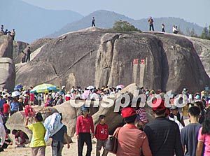 海南三亞著名景區天涯海角今年春節期間迎來旅游高潮。大年初一至初四平均每天數萬游客前來游覽參觀。作者:王辛莉