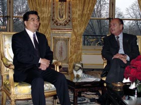 中國國家主席胡錦濤一月二十六日抵達巴黎,開始對法國進行為期三天的國事訪問。