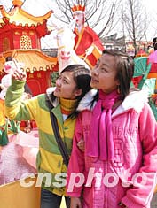 一月二十八日(正月初七),兩名學(xué)生在南京夫子廟游玩時(shí),被“鬧元宵”的花燈所吸引。一年一度的十五鬧花燈活動(dòng)即將拉開(kāi)帷幕,各地的扎燈藝人紛紛亮出絕活,扎出一組組形態(tài)各異的花燈,以饗游客。作者:丁東升