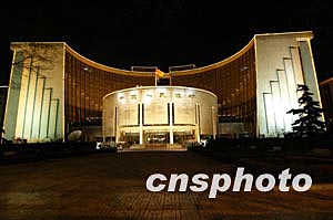 元月三十一日晚,位于北京市西長安街上的中國央行--中國人民銀行辦公樓燈火通明。從二月一日開始,《中國人民銀行法》、《銀行業(yè)監(jiān)督管理法》、《商業(yè)銀行法》這三大中國銀行法將正式實施,這三項法律將從法律上確立中央銀行、銀監(jiān)會的職能劃分,將金融監(jiān)管和執(zhí)行貨幣政策分開,從宏觀上廓清中國金融法規(guī)體系。中新社記者:任晨鳴