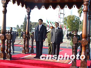 當地時間三日下午三時許,中國國家主席胡錦濤抵達阿爾及利亞首都阿爾及爾,開始對阿爾及利亞進行為期兩天的國事訪問。阿爾及利亞總統布特弗利卡親到機場迎接,并舉行儀式,熱烈歡迎胡錦濤主席訪阿。阿爾及利亞是胡錦濤此次歐非四國之行的最后一站。中新社記者:齊彬 攝