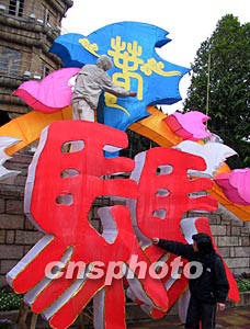 二月四日,馬尾民間節(jié)人制作的七盞大花燈在馬尾港由有關(guān)人員搬上馬祖“閩珠二號”,準(zhǔn)備參加馬祖元宵燈會。今年元宵佳節(jié),馬祖、馬尾將第二次共同舉行“兩馬”鬧元宵燈會活動。作者:劉可耕