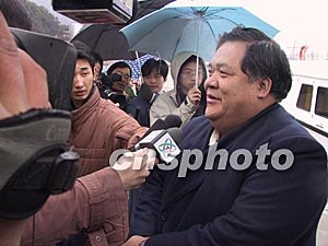 率團(tuán)參加馬尾元宵節(jié)燈會活動的馬祖知名人士陳振清(右一),四日抵達(dá)馬尾港向馬尾鄉(xiāng)親致以新春的祝福。作者:劉可耕