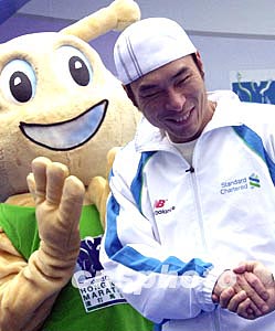 香港歌星許志安,二月八日以“渣打馬拉松2004”形象大使身份參加馬拉松賽。 作者:錢興強