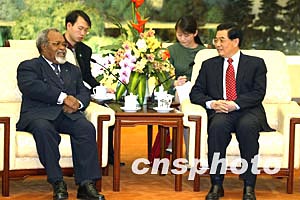 中新社北京二月十日電(記者齊彬)中國國家主席胡錦濤十日下午在會見巴布亞新幾內(nèi)亞總理邁克爾·索馬雷時表示,中國珍視同巴新的傳統(tǒng)友誼,贊賞巴新政府重視發(fā)展對華關(guān)系,堅持一個中國政策。