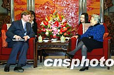 國務院副總理吳儀十二日在北京會見美國貿易代表佐利克。中新社記者:滿會喬
