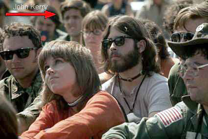 這張照片出現(xiàn)在保守派漢尼迪和林巴的網(wǎng)站上,它攝于1970年的勞工節(jié)的聚會,照片中,簡·方達(dá)和克里坐于最顯著的位置,還有幾排人緊隨其后,老兵們認(rèn)為,克里34年前與簡方達(dá)的聯(lián)系是“給越戰(zhàn)老兵的一記耳光”。