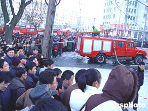 2月15日中午十一時二十分左右,吉林市中百商廈發生特大火災,截至十五時四十分,大火已被撲滅。據吉林省有關部門提供的情況,截止十六點四十分,火災至少造成五十一人死亡、已經有一百二十名群眾被救出,其中受傷七十一人。有關起火原因、傷亡情況正在調查之中。作者:朱萬昌