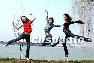 2月26日,來自江蘇、上海、安徽等地的38名優秀選手齊聚常熟,進行為期三天的2004年國際旅游小姐江蘇賽區總決賽。圖為參賽選手在尚湖風景區進行外拍。作者:蔣振江