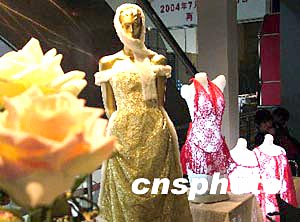 隨著婚慶商品的多元化,出現了專門配婚紗穿著的內衣,2月25日,一家參展商在上;榧喺怪姓钩隽藢榇┲榧喸O計的婚紗內衣,很受女性的歡迎。中新社傳真 井韋 攝