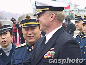 據悉,“藍嶺”號指揮艦訪滬期間,威拉德一行拜會了海軍東海艦隊司令員趙國鈞中將和上海市副市長馮國勤,美艦官兵參觀了中國自行研制的導彈護衛艦,游覽了上海市容,中美海軍官兵還舉行了軍樂表演交流和籃球友誼比賽等一系列聯誼活動。