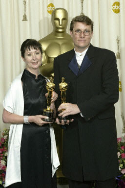 《指環王3:王者回歸》獲最佳服裝設計獎,圖為尼古拉斯和理察德·泰勒上臺領獎。