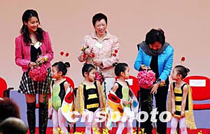 “2004年香港花卉展” 3月5日在維園舉行,民政事務局常任秘書長李麗娟【右】、香港旅游發展局主席周梁淑怡議員【中】、香港小姐曹敏莉等嘉賓主持開幕典禮。政府官員及嘉賓主持花卉展開幕典禮。作者:洪少葵