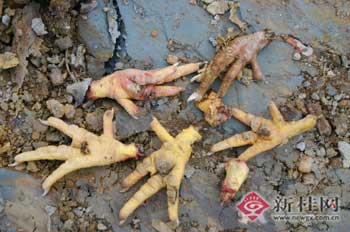 3月6日,廣西檢驗(yàn)檢疫局組織人員,兵分兩路,一路查看現(xiàn)場(chǎng)證實(shí)確有人動(dòng)過(guò)雞爪后,將現(xiàn)場(chǎng)作了消毒和封鎖;另一路與公安部門(mén)一起向舉報(bào)者了解情況。