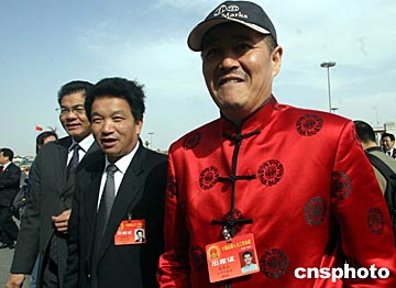 三月十日下午,十屆全國人大二次會(huì)議舉行第四次全體會(huì)議聽取常委會(huì)和兩高報(bào)告,全國人大代表、著名喜劇明星趙本山身著紅色唐裝出席大會(huì)。中新社記者:張勤