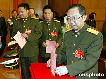 ——“現在請各位代表寫票。大會秘書處在會場后區設有秘密寫票處,代表可以在自己的座位上寫票,也可以到秘密寫票處寫票。”