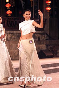 三月十五日晚,“古鎮西塘”2004年國際旅游小姐大賽中國區總決賽在浙江古鎮西塘新搭建的水上舞臺落幕,奪得亞軍的四號選手王雅瓊獲得“中國旅游年度美皇后”稱號,她將代表中國參加四月在德國慕尼黑舉行的世界皇后大賽。中新社記者:盛佳鵬