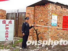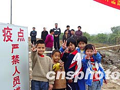 閉家紅、李志基夫婦牽著年幼的兒子,今天上午十時滿臉笑容走出了警方設置的警戒線,三十九天來,他們一家和其他六戶養殖戶二十二人一直被隔離在廣西南寧市興寧區北湖園藝場的一個小山丘上,因為在他們居住的這個山丘上發生了高致病性禽流感疫情。