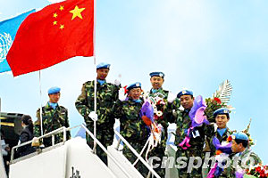 2004年3月16日上午10時(shí)30分,沈陽(yáng)桃仙國(guó)際機(jī)場(chǎng)一架滿(mǎn)載70名維和部隊(duì)先遣隊(duì)官兵的專(zhuān)機(jī)起飛,直飛福州與那里的維和部隊(duì)汽車(chē)連會(huì)合共同組隊(duì)經(jīng)法國(guó)飛抵利比里亞首都。三月底由沈陽(yáng)軍區(qū)派遣的維和工程兵部隊(duì)將與先期到達(dá)的先遣隊(duì)會(huì)合,共同完成利比里亞的維和任務(wù)。夫子 攝