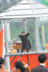 昨日上午7時(shí),記者來(lái)到碧峰峽的接待大廳外,看見(jiàn)陳建民已端坐在玻璃房中的書桌前開始看書。據(jù)公眾見(jiàn)證人說(shuō),陳建民早晨6時(shí)就起床了。記者撥通了陳建民的電話后得知,原來(lái)他把平時(shí)的生活習(xí)慣也帶進(jìn)了玻璃房。他告訴記者,平時(shí)他就習(xí)慣6時(shí)起床,所以前晚11時(shí)許他睡下時(shí)就定好了早晨6時(shí)的鬧鐘。“絕食第一晚,我睡得比平時(shí)輕松。因?yàn)槠綍r(shí)晚上還有病人來(lái)求診,睡不安穩(wěn),昨日我一覺(jué)就睡到早上,像在休假。”