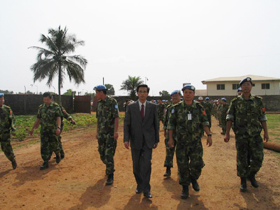 歡迎儀式結束后,林大使在周紹瑞參謀長及中國維和部隊各分隊領導的陪同下,視察了我維和部隊營地,并看望了各級指戰(zhàn)員。