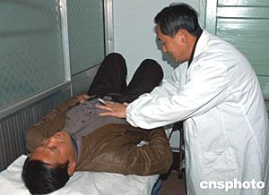 湖北省隨州市疾病控制中心艾滋病防治所的醫生,三月下旬為接受免費藥物治療的艾滋病患者體檢。中新社記者:曾利明