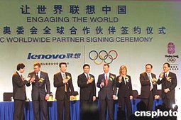 三月二十六日,聯(lián)想集團(tuán)與國際奧委會(huì)在北京簽署合作協(xié)議,宣布正式成為第六期國際奧委會(huì)全球合作伙伴(簡(jiǎn)稱TOP),這是奧運(yùn)歷史上中國企業(yè)首次獲此資格。國際奧委會(huì)市場(chǎng)開發(fā)委員會(huì)主席海博格、北京奧組委主席劉淇、中國奧委會(huì)主席袁偉民、聯(lián)想集團(tuán)董事局主席柳傳志等出席了簽約儀式。中新社記者:武仲林