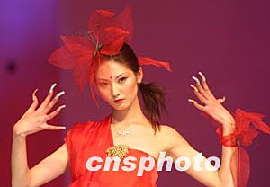 三月三十一日晚,在北京中國國際時裝周舞臺上,美甲演繹2004年美甲的流行趨勢。將大自然修飾于指尖,仿佛能使人從指尖吸到大自然的氣息與鮮花的芬芳。中新社記者:史利