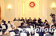 為使香港社會(huì)更多了解全國(guó)人大常委會(huì)就《基本法》附件一第七條和附件二第三條的解釋,香港特區(qū)政府和中央駐港聯(lián)絡(luò)辦公室,邀請(qǐng)全國(guó)人大常委會(huì)喬曉陽(yáng)副秘書長(zhǎng)、全國(guó)人大常委會(huì)法律工作委員會(huì)李飛副主任、國(guó)務(wù)院港澳事務(wù)辦公室徐澤副主任,專程到港出席座談會(huì),聽取各界人士對(duì)香港政制發(fā)展的建議。圖為4月7日下午在香港禮賓府舉行的香港政制發(fā)展座談會(huì)。作者:洪少葵