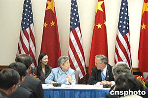 吳儀說:我已經跟佐立克大使說了,歡迎勞聯產聯負責人到中國實地調查,到中國的工會和勞動保障部門進行具體調查,我可以邀請他們去。完