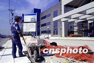 2004年雅典奧運會的各項設施工程加緊進行,新聞中心在日前總算落成,但內外裝修工程依然艱巨。作者:田地