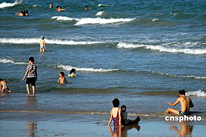 黃金周頭三天,海南每天艷陽高照,最高氣溫達到35度左右,許多游客紛紛來到海濱享受日光浴和海水浴。蒙鐘德 攝