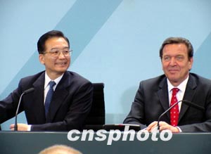 施羅德完全贊同溫家寶對(duì)兩國(guó)關(guān)系所提的建議。他還表示,德國(guó)支持歐盟承認(rèn)中國(guó)的完全市場(chǎng)經(jīng)濟(jì)地位,解除對(duì)華軍售禁令。德國(guó)愿為此發(fā)揮積極作用。