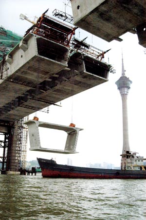 中新網(wǎng)5月12日電 據(jù)澳門日報報道,澳門第三大橋工程進展順利,預計主航道對上的橋面可在短期內完成。