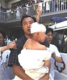 北京大學第一醫院幼兒園十五名兒童和三名教師二00四年八月四日上午九時左右在幼兒園被人持菜刀砍傷。其中一名重傷兒童經搶救無效死亡。犯罪嫌疑人是該幼兒園一名五十一歲的臨時工。北京警方透露,兇嫌有精神病史