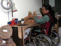 圖:臺(tái)灣輪椅上的雕刻家勇者林正發(fā)(3月8日20:28)